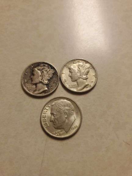 LOT 326 - Mercury 1944, 45 & Eisenhower 1946 90% Silver dimes