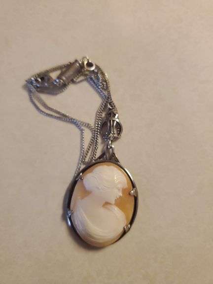 LOT 376 - 12k gold 2 gram necklace w/sterling 4 gram cameo pendant