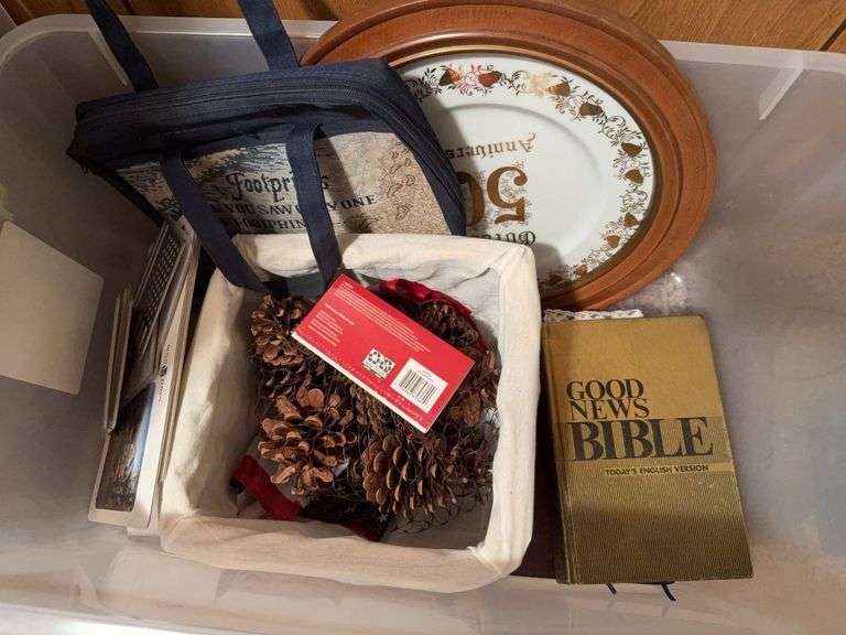 LOT 127 - Bibles, Basket, Bible Bag, Pinecones